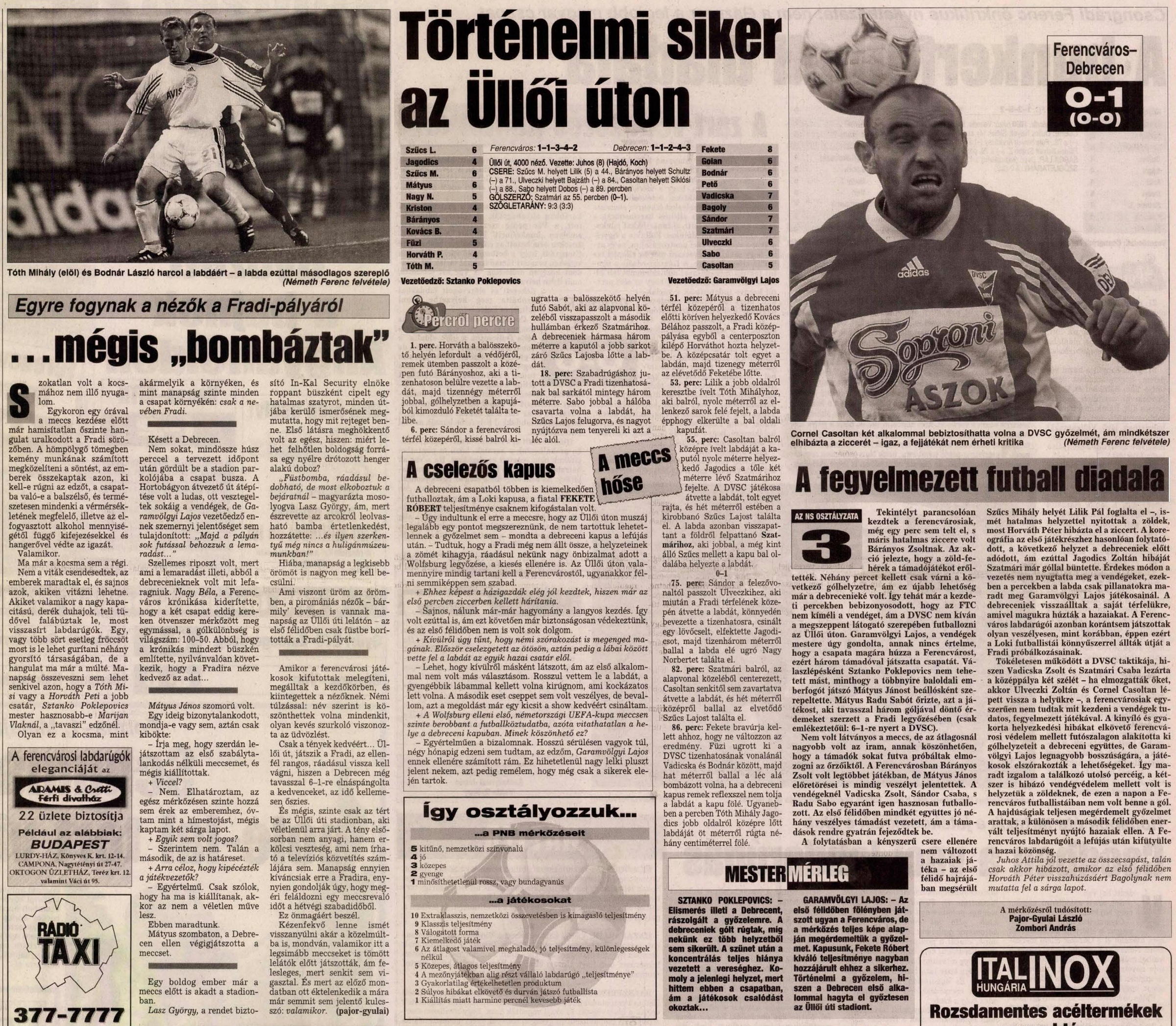 51. perc: Horváth P. lépett ki a vendégvédők között, elhúzta a labdát Fekete mellett, de sokáig kivárt, s a debreceni kapus lábbal mentett.