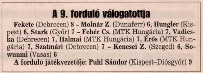5 gólos: Horváth Gy. (Nagykanizsai FC), Nicsenko (Dunaferr), Sowunmi (Vasas DH)