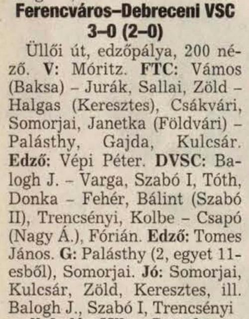 Ferencváros-Debreceni VSC 0-1 (0-0)