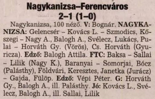 1999.XI.7. Nagykanizsa – Ferencváros 0-2
