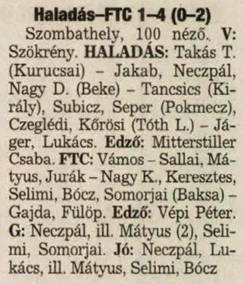 1999.XII.11. Haladás-Milos – Ferencváros 0-2