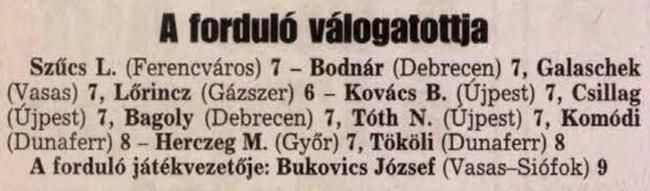8 gólos: Frunza (Diósgyőr), Kenesei K. (MTK Hungária)