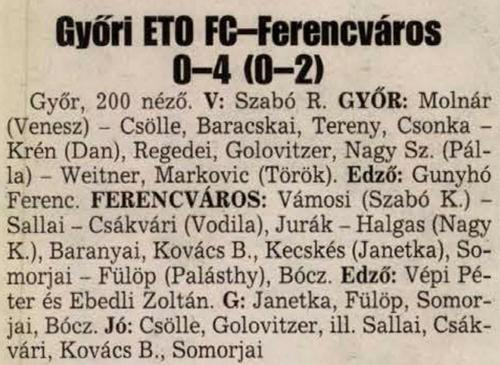 2000.V.12. Győri ETO – Ferencváros 2-1
