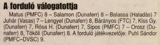 Győr: Posza – Bognár, Böjte, Vasas (Salagean 57.)- Mracskó, Baumgartner, Győri, Erős (Nagy L. 80.), Vayer – Herczeg, Ferenczi (Balla 46.)