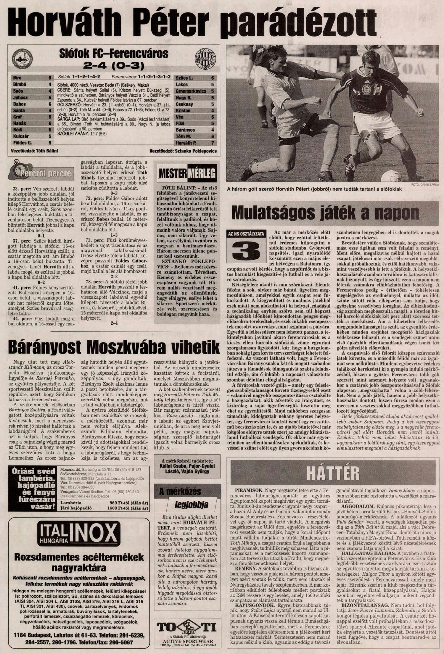 Az első félidőt „átalvó” siófoki csapat a második 45 percben hiába támadott, már nem tudta behozni a Ferencváros háromgólos előnyét. A vendégcsapat megérdemelten győzött.