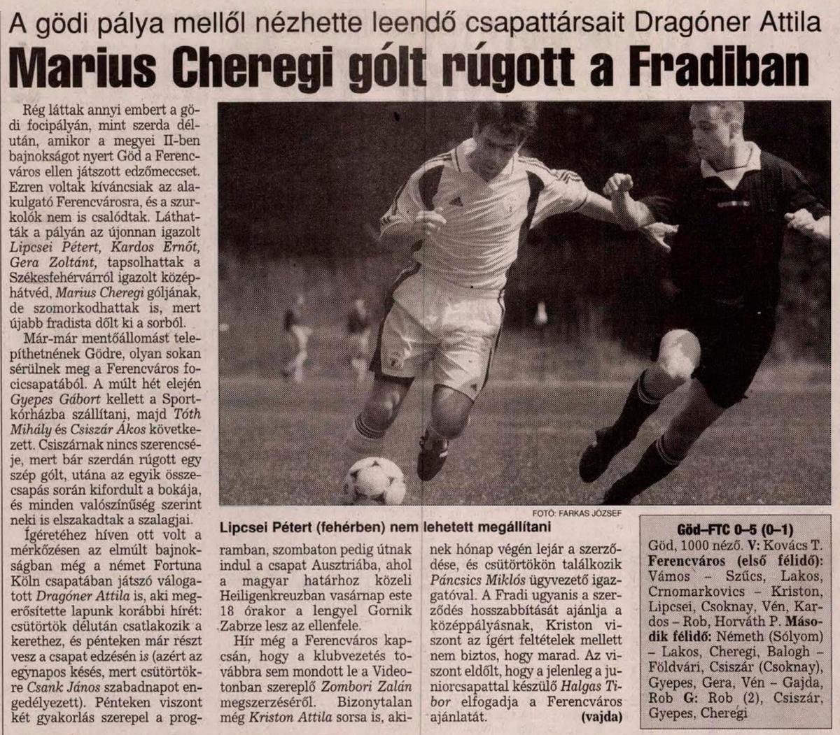 Kategória: 2000/01 | Címke: 2000/01, Cheregi Marius, Csiszár Ákos, edzőmérkőzés, Gera Zoltán, Göd, Gyepes Gábor, Kardos Ernő, Rob Kornél