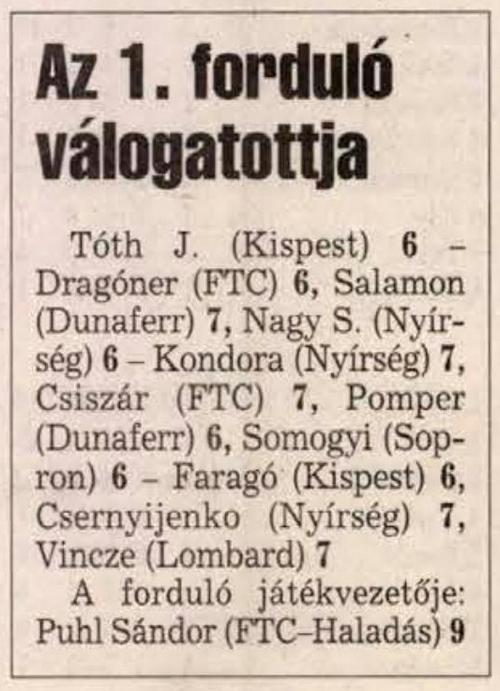 Labdarúgó NB I., alapszakasz, 1. forduló, A-csoport: