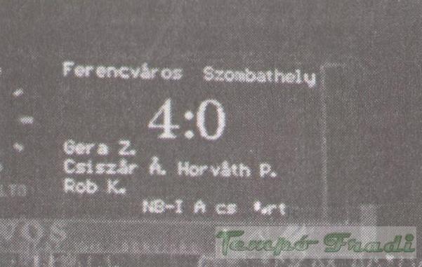 Gól: Gera (45.), Csiszár (64.), Horváth P. (83.), Rob (89.)