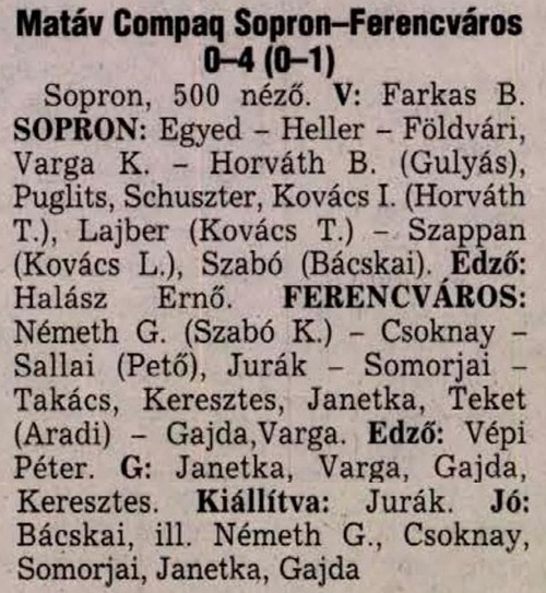 2000.VIII.27. Sopron – Ferencváros: 2-1