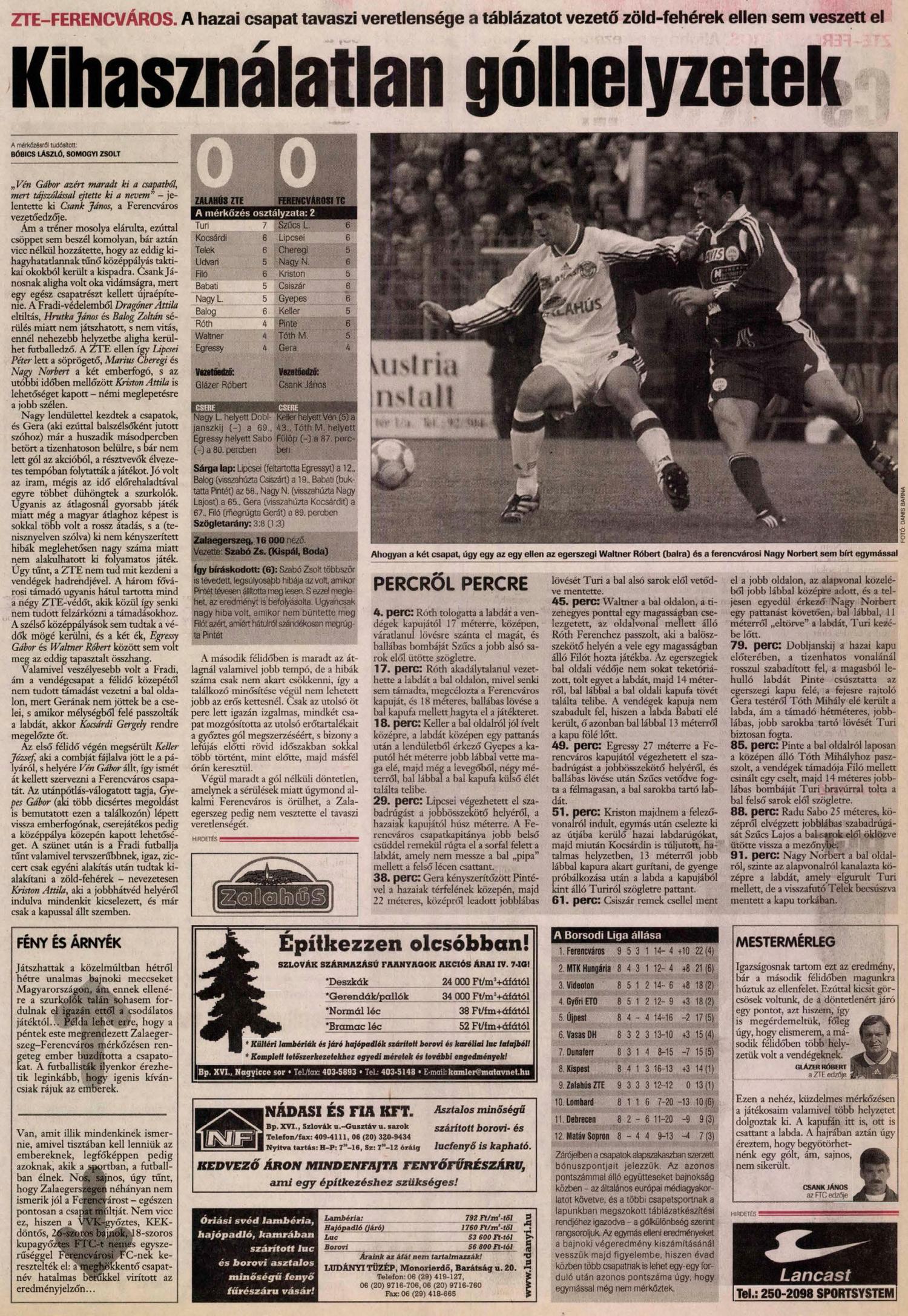 Zalaegerszeg, 14.000 néző, V: Szabó Zs.