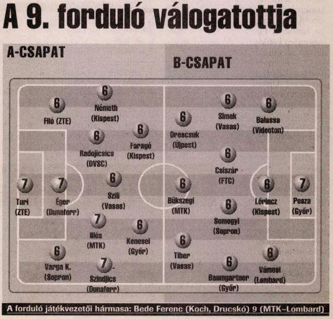 9 gólos: Urbán (Újpest), Zavadszky (Dunaferr)
