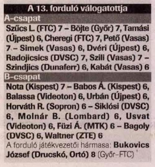 13 gólos: Kerekes (Debrecen), Vincze I. (Lombard)