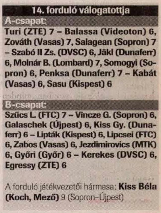 14 gólos: Kenesei K. (Győri ETO), Kerekes (Debrecen)