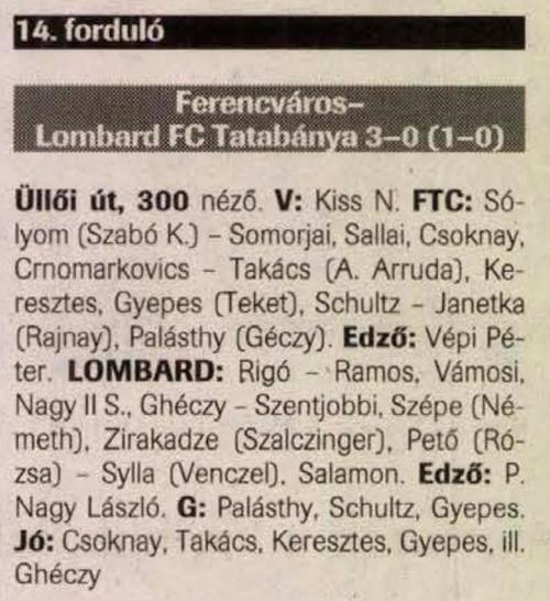 2001.IV.28. Ferencváros – Lombard Tatabánya: 0-0