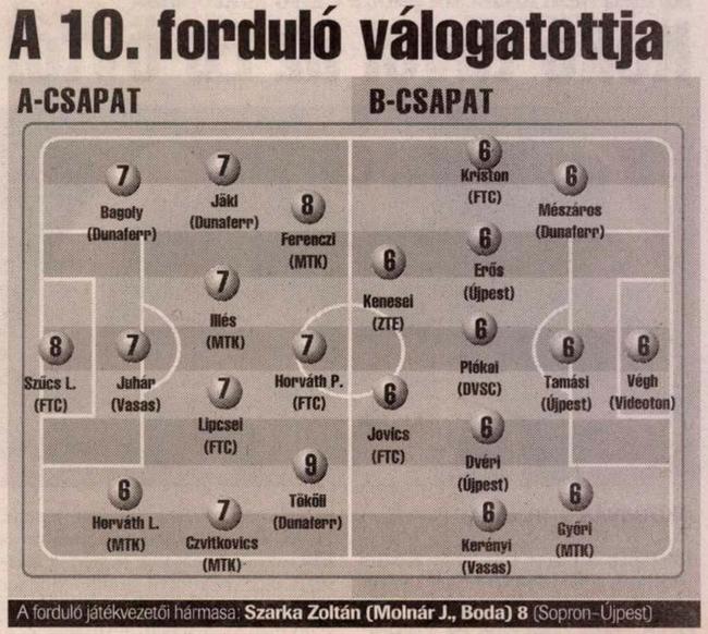 5 gólos: Dvéri (Újpest), Egressy (Zalaegerszeg), Sira (Sopron), Tokody (Újpest), Tóth M. (Sopron)