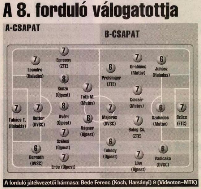 4 gólos: Dvéri (Újpest), Kenesei (Zalaegerszeg), Tököli (Dunaferr)
