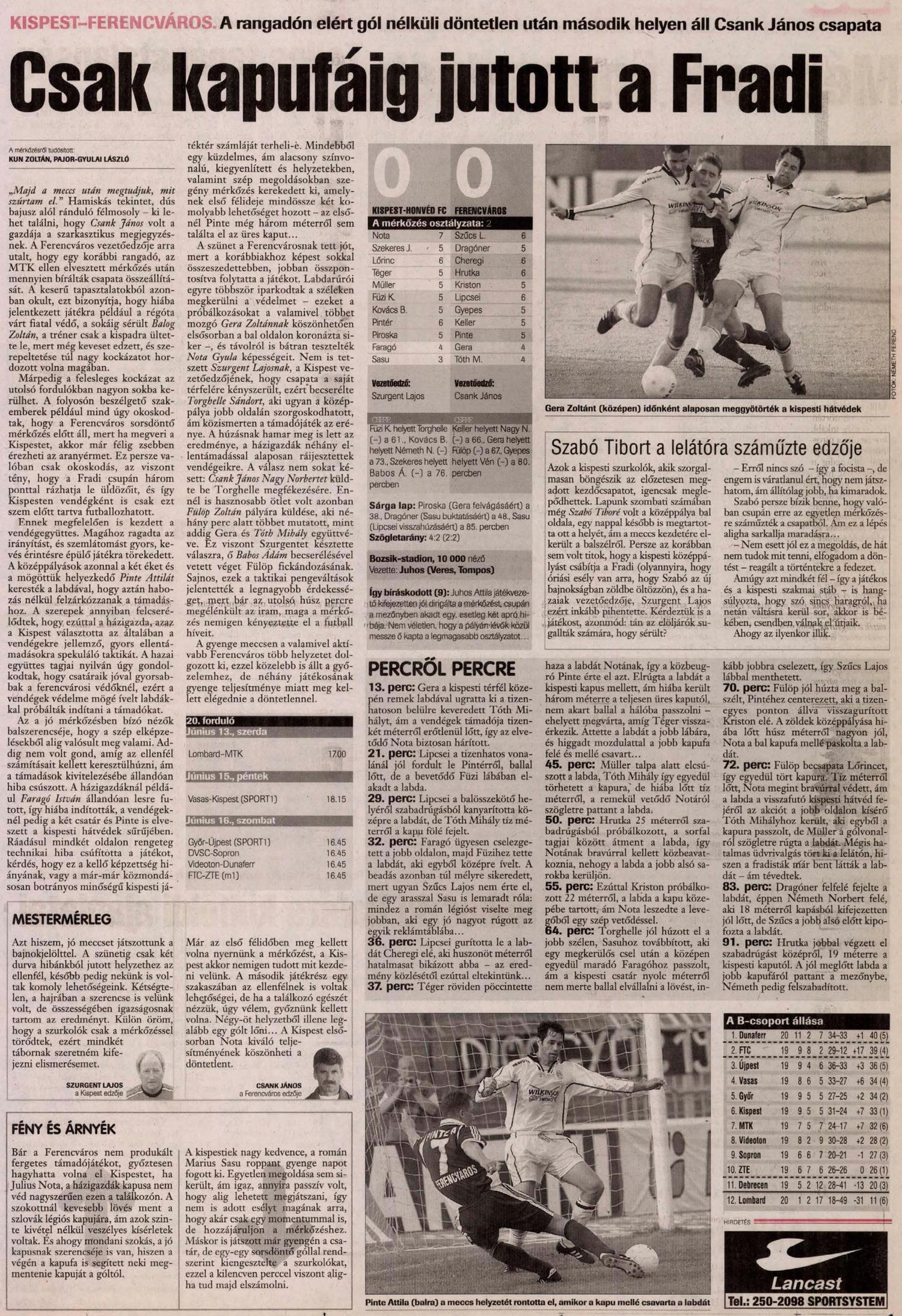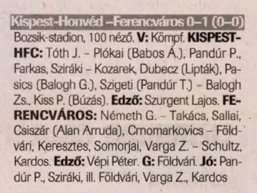 2001.VI.10. Kispest-Honvéd – Ferencváros: 0-0