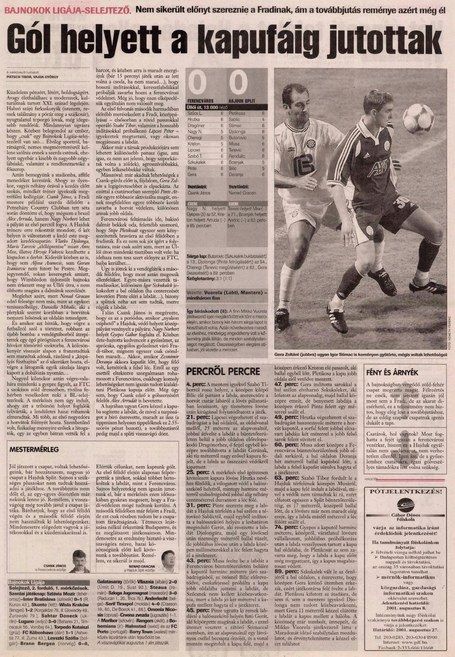 2001.VII.25. BL selejtező, Ferencváros – Hajduk Split: 0-0