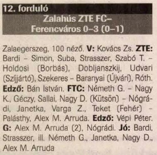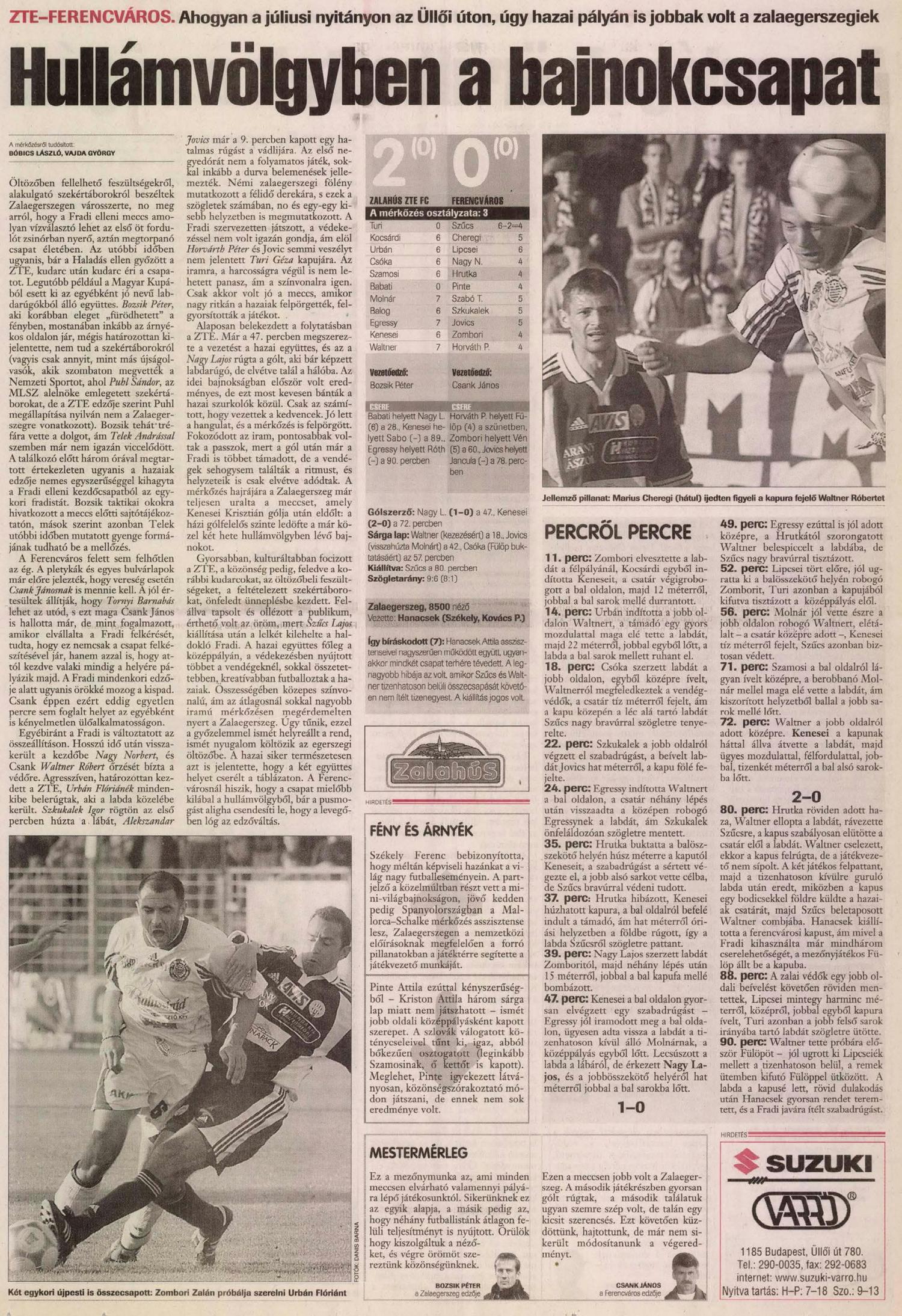 Zalaegerszeg: Turi – Kocsárdi, Csóka, Urbán, Szamosi – Babati (Nagy L. 28.), Molnár B., Balog, Egressy (Róth 92.) – Kenesei, Waltner