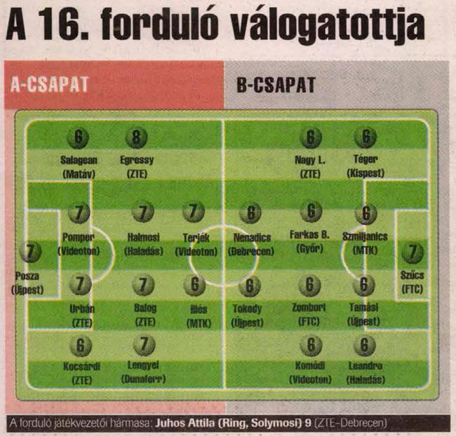 36. perc: Horváth P. balról, 8 m-re a kaputól szabadon kapta a labdát, lövését Végh bravúrral, lábbal hárította.