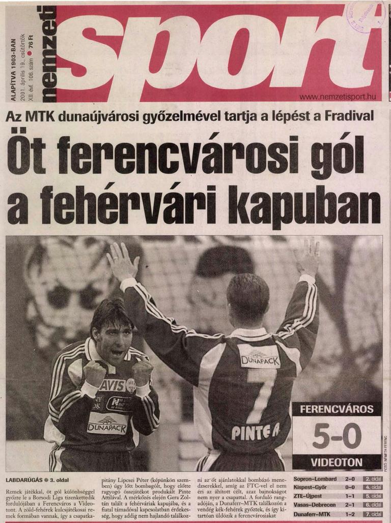 2001.IV.18. Ferencváros – Videoton: 5-0