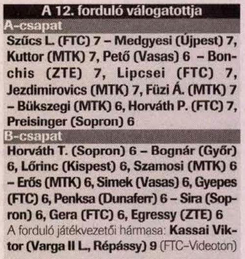 13 gólos: Kerekes (Debrecen), Vincze I. (Lombard)