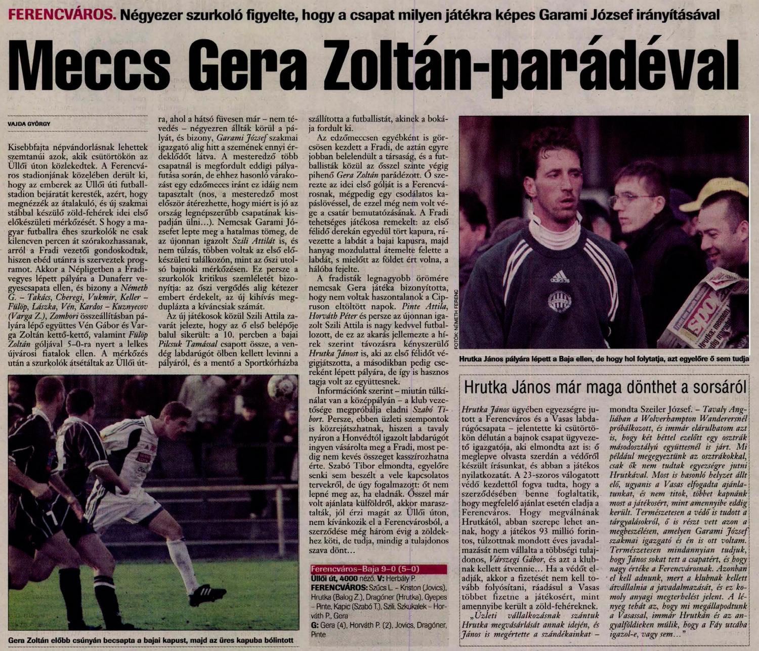 2002.I.31. Ferencváros – Baja: 9-0 (edzőmérkőzés)