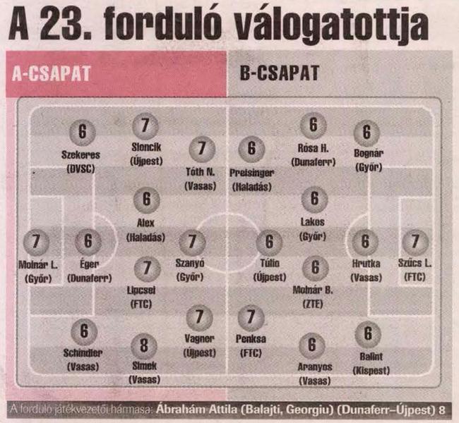 23. perc: Gera ugrott ki a lesre játszó védők között, a mellette futó Penksa elé játszott, aki 5 m-ről, estében, óriási helyzetben a kapu fölé lőtt.