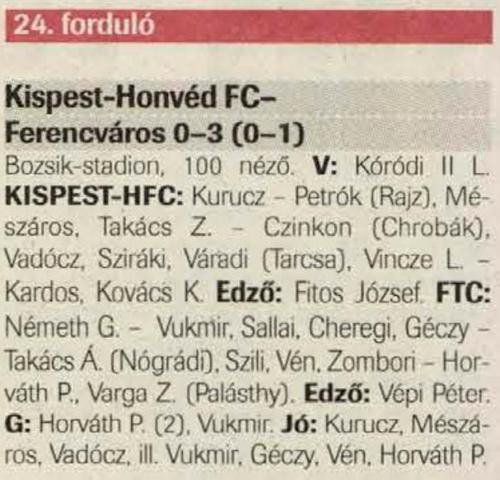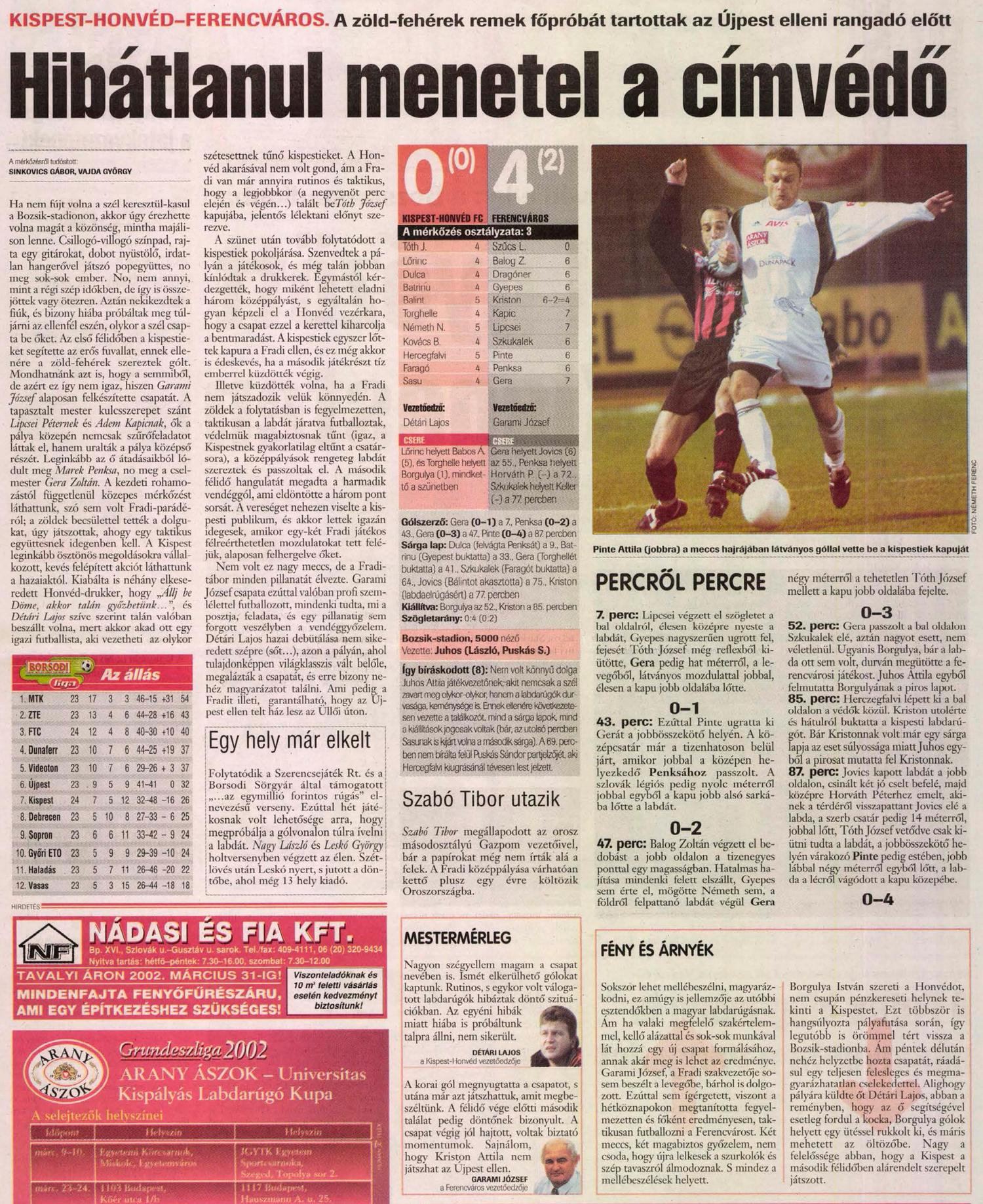 2002.III.8. Kispest-Honvéd – Ferencváros: 0-4