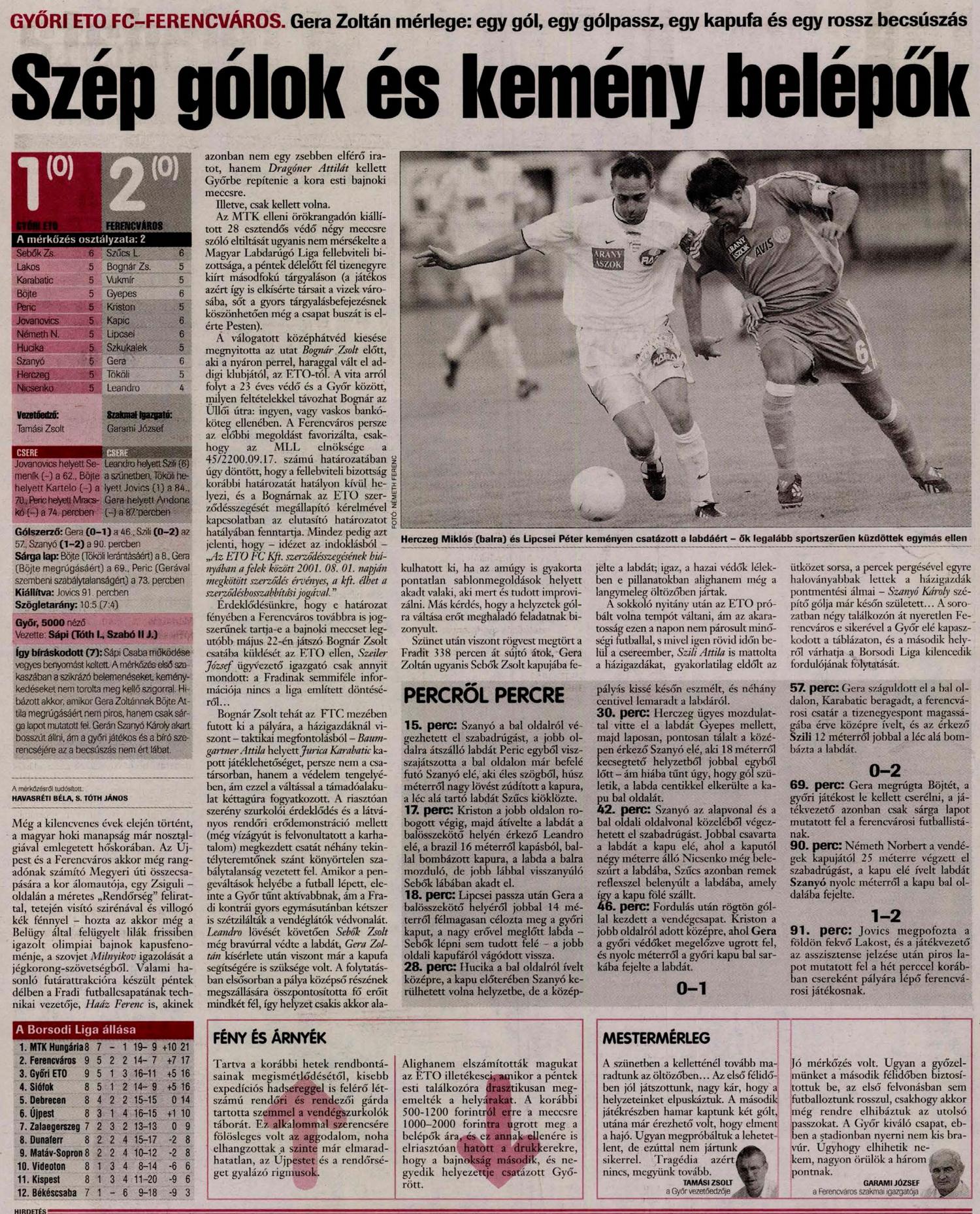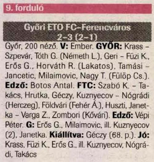 2002.IX.27. Győri ETO – Ferencváros: 1-2