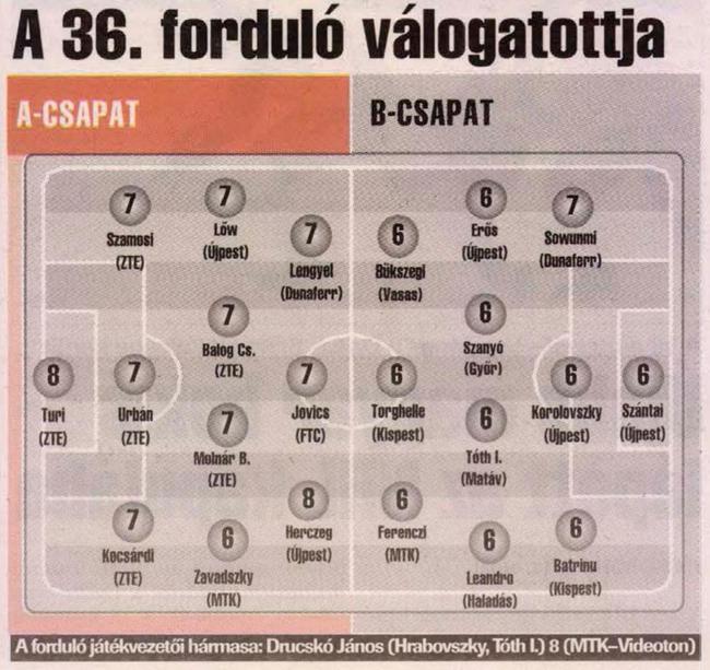 Szabó Zs. lefújta az első félidőt. A másik két mérkőzésen 45 perc után: MTK-Videoton 1-1, Zalaegerszeg-Dunaferr 1-0. A Megyeri úti stadionban levonuláskor az egyik újpesti játékos ököllel belecsapott a hazai öltözőajtó üvegébe, ami betört.