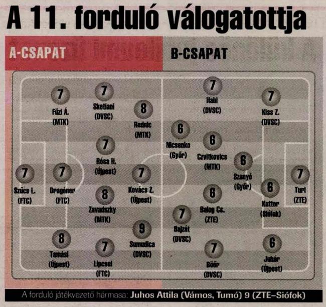 Sárga lap: Sztanojevic (34.) illetve Kriston (32.)