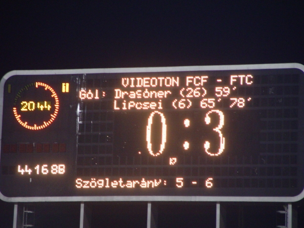 Ebben a pillanatban megjelent a székesfehérvári eredményjelzőn a felirat: „Köszöntjük a Kedves szurkolókat!”. Mindez jelen esetben kissé cinikus, főleg annak tudatában, hogy két hete – a szintén zárt kapus meccsen – ugyanez a felirat látható volt.