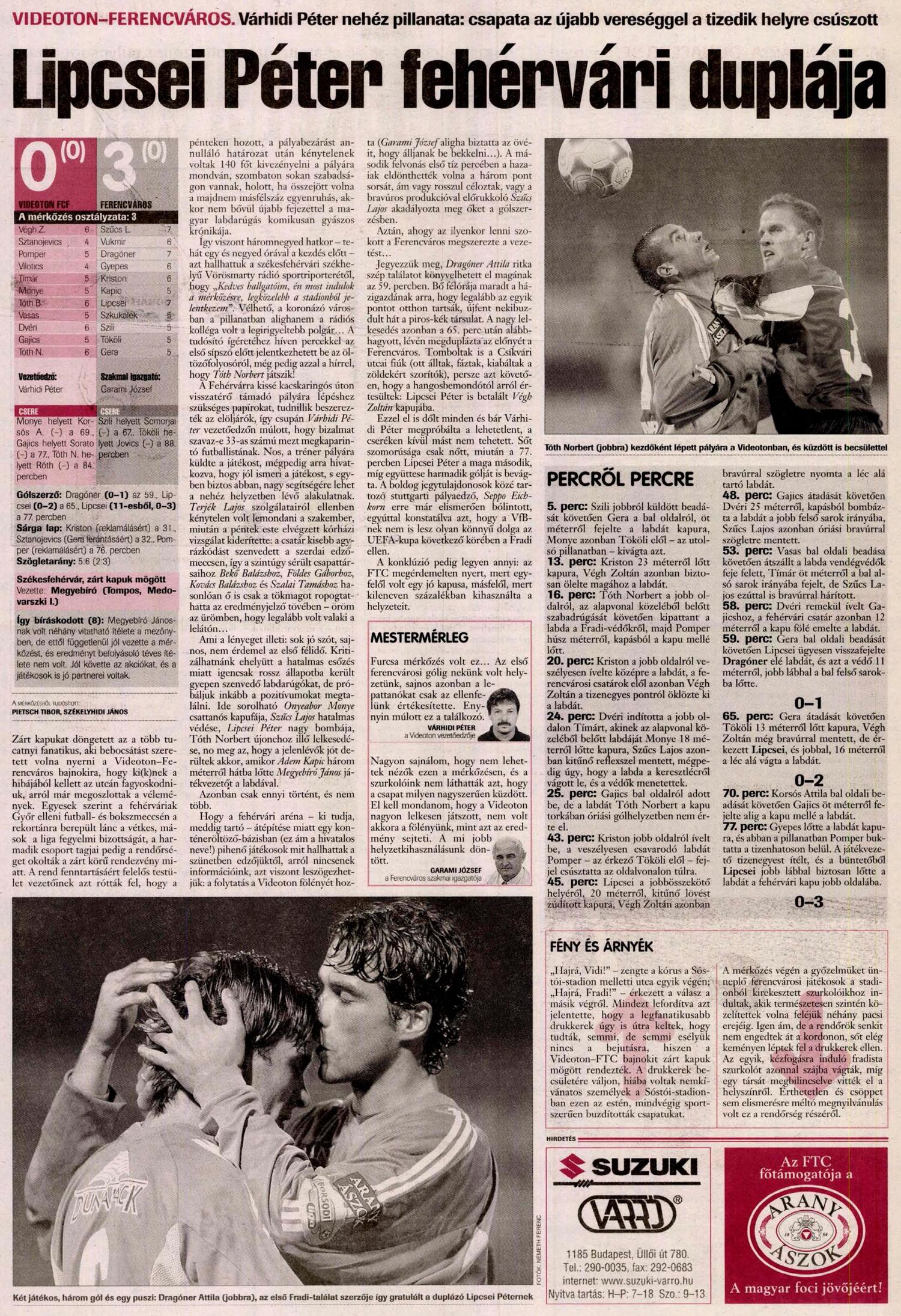 ftc.hu: Csapatunk nem mindennapi körülmények között, zárt kapus mérkőzésen a második félidőben megtörte a Videoton ellenállását és idegenben nyert 3-0-ra.