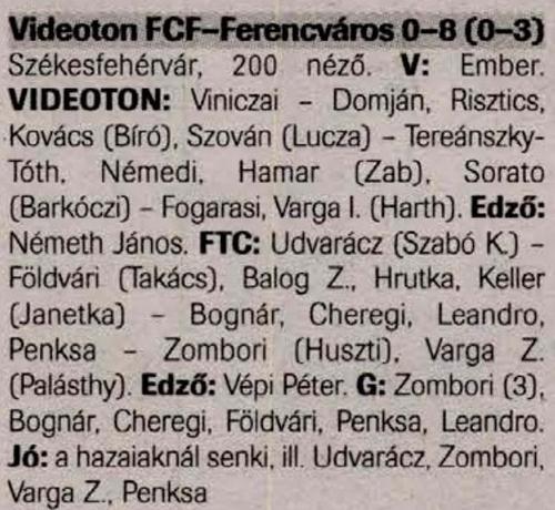 Videoton: Végh Z. – Stanojevic, Pomper, Vilotic – Tímár, Monye (Korsós A. 69.), Tóth B., Vasas – Dvéri – Gajic (Sorato 77.), Tóth N. (Róth 84.)