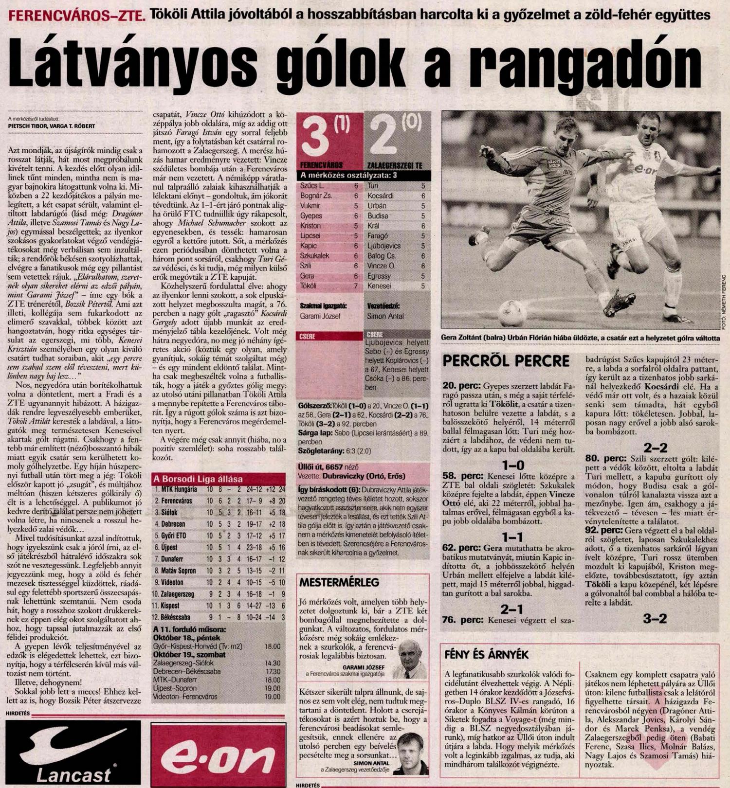 Tököli Attila: – Eddig csak kupameccseken tudtam duplázni a Fradiban. Azt hiszem a legjobbkor rúgtam két gólt bajnokin, hiszen a sors nagy igazságtalansága lett volna, ha ezt a meccset nem nyerjük meg! Nagyon boldog vagyok, és köszönöm a szurkolóknak a bíztatást és az ünneplést!