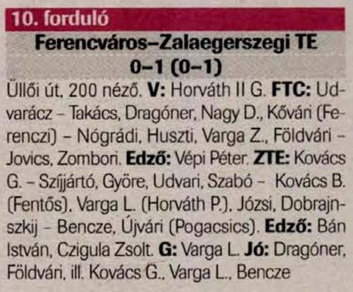 ZTE: Turi – Kocsárdi, Urbán, Budisa, Král – Faragó, Ljubojevic (Koplárovics 70.), Vincze O., Balog Cs. – Kenesei (Csóka 86.), Egressy (Sabo 70.)