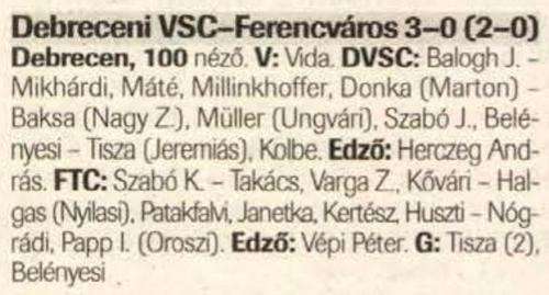 Debrecen, 7.000 néző, vezette: Kassai (Erős, Kelemen)