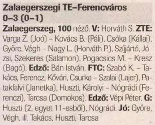 Zalaegerszeg, 9.000 néző, vezette: Szabó Zs. (Kispál, Szabó R.)