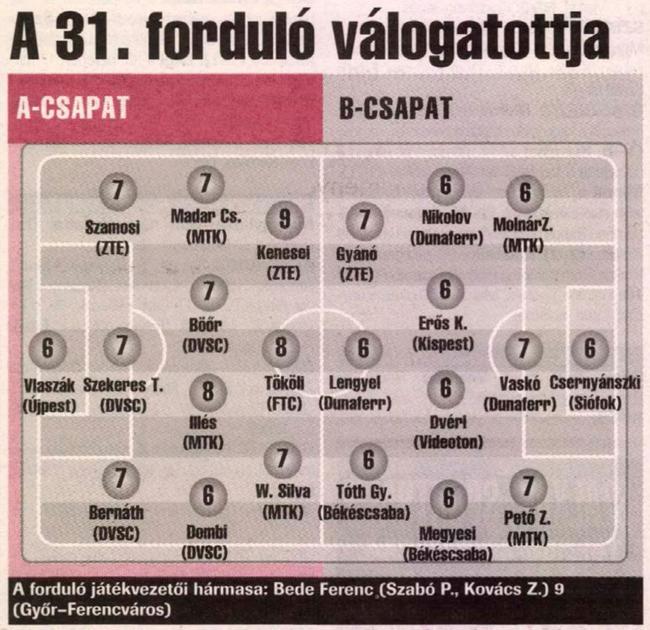 Vezetüüünk!!! Balog hatalmas bedobása után Gera Sebők elől tovább csúsztatta a labdát, melyet végül Tököli 3 méterről az üres kapuba csúsztatott (0-1). A másik két meccsen: MTK-Siófok 0-0, Debrecen-Újpest 0-0.