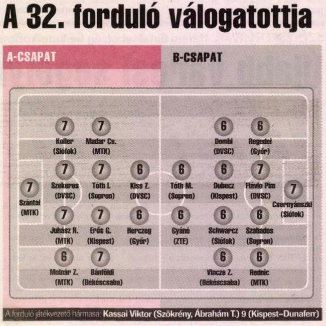 Debrecen: Balogh –- Bernáth, Flavio Pim, Szekeres (Szabó 82.), Selymes –- Dombi, Habi, Vincze G., Hanák –- Andorka (Dávid 59.), Kiss Z.