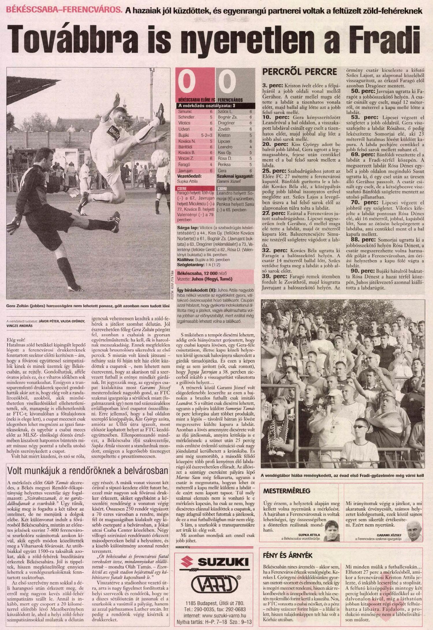 Békéscsaba, 12.000 néző, vezette: Juhos Attila (Hegyi, Tumó)