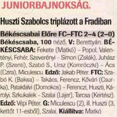 Békéscsaba, 10.000 néző, vezette: Juhos (Tumó, Hegyi)