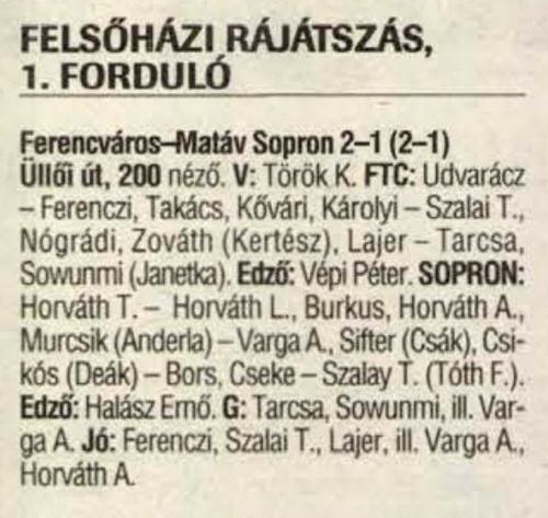 Ferencváros – Matáv-Sopron: 3-0 (1-0)