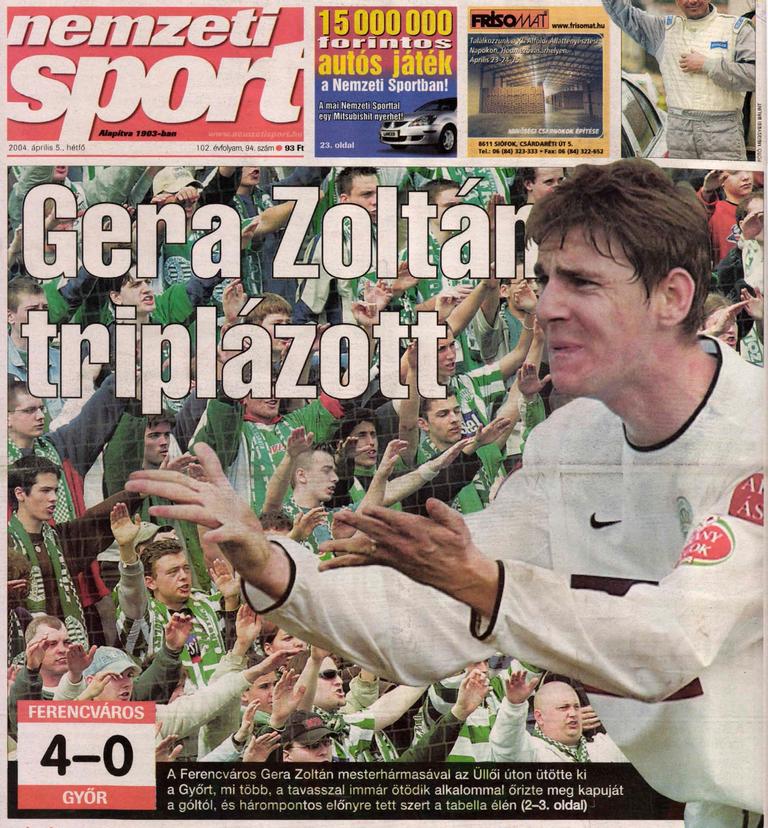 Mesterhármas! A Ferencváros csatára, Gera Zoltán tegnap az ETO ellen egymásután három gólt szerzett. A 18-szoros válogatott támadó a teljesítményéért tudósítóinktól 9-es osztályzatot kapott, és ezzel a mérkőzés, valamint a 21. forduló legjobbja lett. Az FTC-Győr általános értékelésén túl a történetünk természetesen a tehetséges labdarúgóról szól.