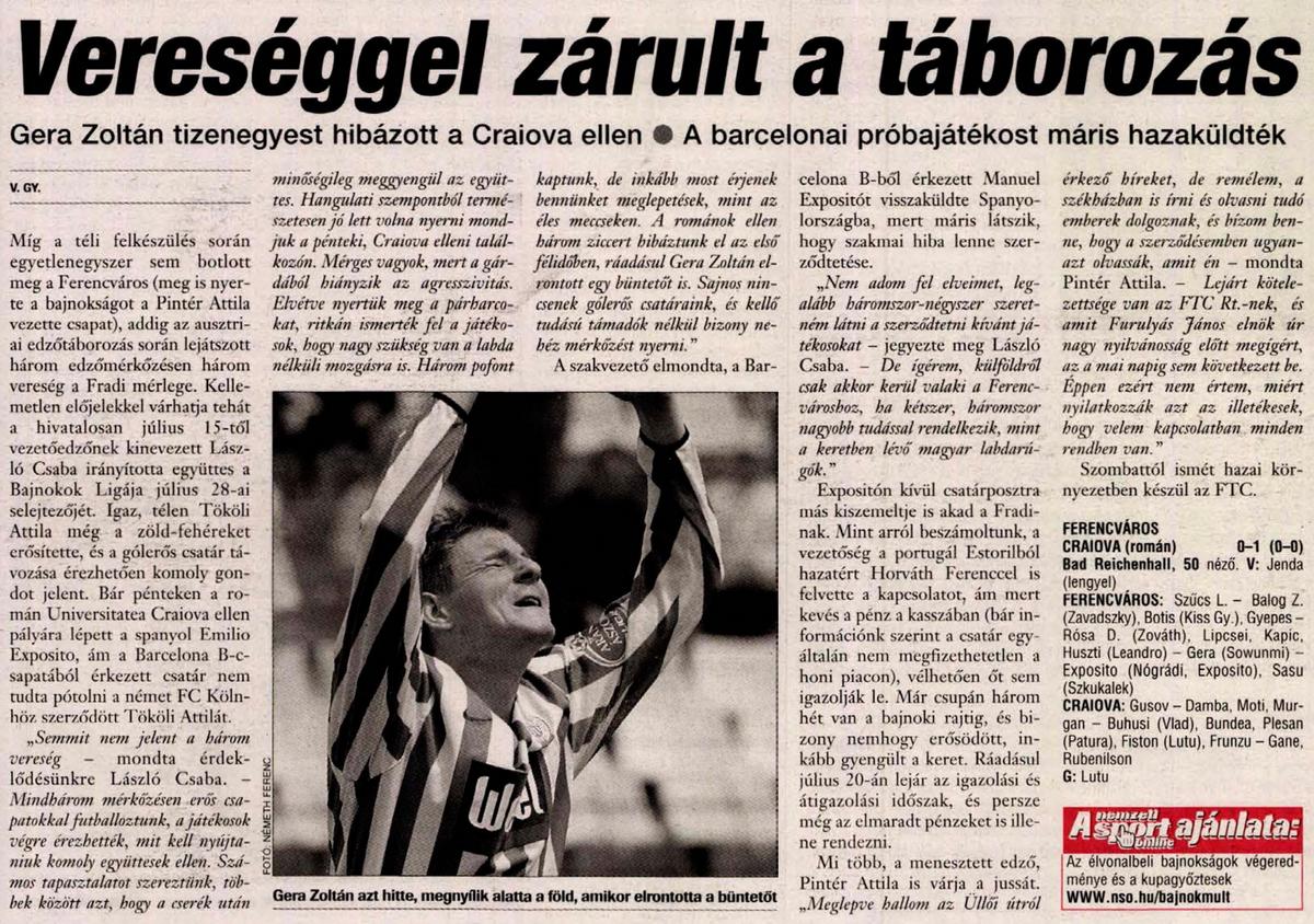 „Semmit nem jelent a három vereség – mondta érdeklődésünkre László Csaba. – Mindhárom mérkőzésen erős csapatokkal futballoztunk, a játékosok végre érezhették, mit kell nyújtaniuk komoly együttesek ellen. Számos tapasztalatot szereztünk, többek között azt, hogy a cserék után minőségileg meggyengül az együttes. Hangulati szempontból természetesen jó lett volna nyerni mondjuk a pénteki, Craiova elleni találkozón. Mérges vagyok, mert a gárdából hiányzik az agresszivitás. Elvétve nyertük meg a párharcokat, ritkán ismerték fel a játékosok, hogy nagy szükség van a labda nélküli mozgásra is. Három pofont kaptunk, de inkább most érjenek bennünket meglepetések, mint az éles meccseken. A románok ellen három ziccert hibáztunk el az első félidőben, ráadásul Gera Zoltán elrontott egy büntetőt is. Sajnos nincsenek gólerős csatáraink, és kellő tudású támadók nélkül bizony nehéz mérkőzést nyerni.”