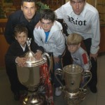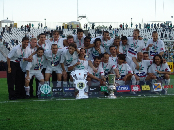 Mi is átvettük az érmeket, Lipcsei Péter pedig a magasba emelte a kupát. Valamennyi játékosunkon ugyanolyan póló van, melynek eleján a „Kupagyőztes 2003/2004″ felirat olvasható, hátul pedig egy hatalmas 20-as szám jelzi, hogy ez volt a 20. kupagyőzelmünk. A fiúk, miután a szponzorok táblája mögött elkészült a csapatkép, szurkolóinkhoz viszik a kupát és folytatódik az ünneplés. Honlapunkon hamarosan elolvashatják a mérkőzés összefoglalóját és természetesen nem maradnak el a nyilatkozatok sem.101