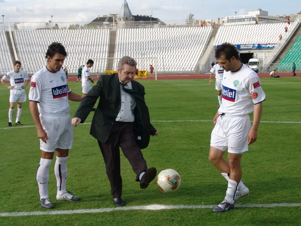 A meccs előtti kezdőrúgást krónikásunk, a 60 éves Nagy Béla végezte el.