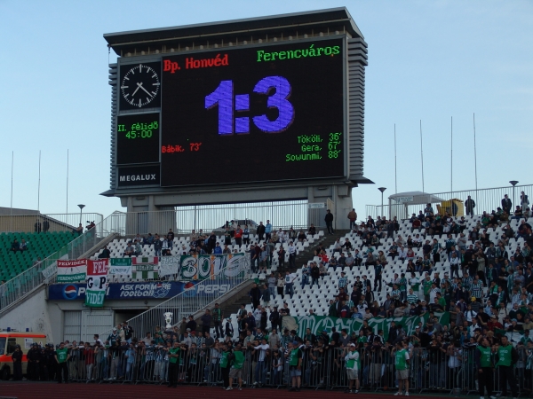 Szurkolóink mintegy háromszázan lehetnek a lelátón, a kispestiek kétszer ennyien vannak a szektorukban. A mieink tavalyi helyükről szurkolhatnak, a kispesti drukkereket ott helyezték el, ahol tavaly a debreceniek voltak. .