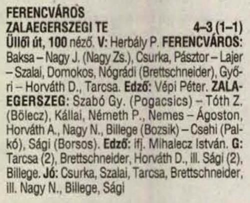 Évadbeli utolsó hazai meccsén tehát azzal a lelki teherrel léphetett pályára az FTC, hogy kérdéses, a győzelemért járó három pont a végelszámolásnál is az egyébként még az UEFA-kupa-indulás jogáért hadakozó alakulatot gazdagítja-e. Ezzel együtt agilisan kezdtek a zöld-fehérek, és negyedóra alatt kétszer is felperzselték a ZTE védelmét. Hogy mégsem dőlt el már a prológ során a csata, annak csupán az az oka: az első egerszegi ellencsapásra összerogyott a Ferencváros hátsó alakzata is…